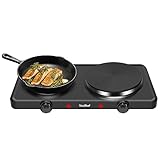 1Duronic16% OffDuronic Hot Plate HP2 BK, Table Top Cooking, 2500W Black Steel Electric Double Hob with Handles, 2 Cast Iron Portable Hob Burner Rings (1500W & 1000W) for Home Kitchen, Pots, Camping
