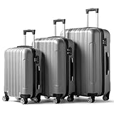 Karlhome Set of 3 Suitcase Set, Luggage Sets with 4 Rolling Spinner Wheels TSA Lock, Lightweight Hardside Carry On or Check in Trolley Travel Case, Silver Grey ABS Hard Shell