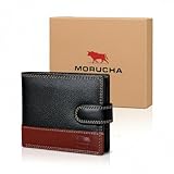 3MORUCHA17% OffMORUCHA RFID Blocking Genuine Leather Wallet for Men – Slim Bifold Bull Leather Wallet with Coin Pocket, ID Window, 8 Card Slots – Premium Black/Brown Luxury Gift Box (Model #M75)