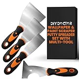 2DIY DoctorDIY Doctor 4-Piece Wallpaper Scraper Set (1 Pack) – Includes 3 Strippers & 1 Multifunctional Putty Scraper – Paint Scraper Tools in Sizes 1.5", 2.5", 3.5" – For Wallpaper Removal, DIY & Painting Tasks